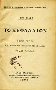 [3] The most significant of these was the undertaking by the brothers Dimitrios and Andreas Pournaras in the 1920s, who organised a ‘committee of scientists’ to translate all three volumes of Das Kapital from the French translation by Jacques Molitor. However, only the first volume and part of the second made it to the printer.