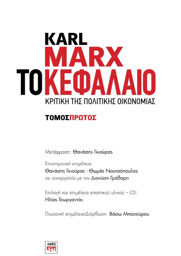 In the early 2000s, a significant need had emerged for scholarly translations of classical works such as the texts of Marx, at least for the purposes of university teaching (the possibility of incorporating Marx into the curriculum being one of the gradual outcomes of the regime change). Around that time, a team of university teachers in the Faculty of Political Science at the University of Crete decided to undertake an effort to translate Das Kapital anew, building on the new linguistic, conceptual, and theoretical possibilities that had matured during the last third of the 20th century, as well as the fruitful international discussions about the structure and development of Marx’s work, with the main purpose of facilitating the educational needs of university courses.