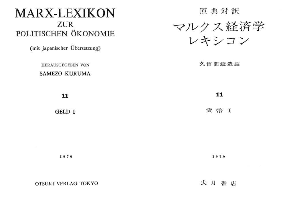 Soon after the collection was catalogued, its existence came to the attention of Naoe Kobayashi, an editor at Ōtsuki Shoten, which the publisher of the Japanese language edition of Marx-Engels-Werke. Kobayashi proposed publishing the content of the notecards in book form, and this eventually led Ōtsuki Shoten to partner with the OISR to back Kuruma’s Marx-Lexikon zur politischen Ökonomie (1968–1985) – a 15-volume collection of passages from the works the works of Marx on a number of key topics, with original German alongside the Japanese translations. The name Marx-Lexikon was modelled after the Hegel-Lexikon (Hermann Glöckner, ed.), while the format of arranging passages under various headings and subheadings was influenced by the Marx Brevier (Franz Diedrich, ed.) and the Friedrich Engels Brevier (Ernst Drahn, ed.). This format is quite different from a comprehensive dictionary of Marxist thought, such as the Dictionnaire critique du marxisme (Georges Labica, ed.) or the related Historisch-kritisches Wörterbuch des Marxismus (Wolfgang Fritz Haug, ed.). Instead of providing definitions of fundamental concepts, the scope of Marx-Lexikon is limited five key topics: competition, materialist conception of history, method, crisis, and money. Kuruma was particularly interested in topics that are not dealt with in a single place within the work of Marx and thus require taking his entire oeuvre into consideration. Another characteristic of Marx-Lexikon is that it aims to encourage readers to grapple with lengthy passages on their own, instead of providing conclusions or definitions. Kuruma wanted readers to go straight to the source and read Marx carefully for themselves, rather than relying on his own interpretation or synopsis.