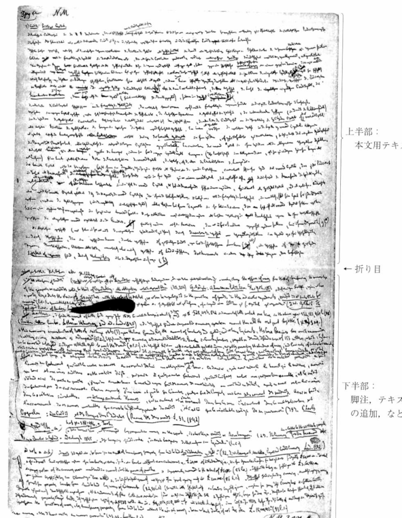 After the war, Kuruma steadily built up a new stack of notecards as his research progressed, this time covering a wider range of subjects. By the 1960s, the collection numbered around 10,000 notecards. In order for his colleagues and students to be able to more easily access this useful resource, Kuruma decided to catalogue the collection – or, rather, he asked his son to do it for him. Ken managed to put it off this onerous task until Ōtani stepped in to undertake it, demonstrating the energy and attention to detail that would make him such an outstanding MEGA editor a few decades later. By 1965, Ōtani had completed the job of putting Kuruma’s notecards into order.