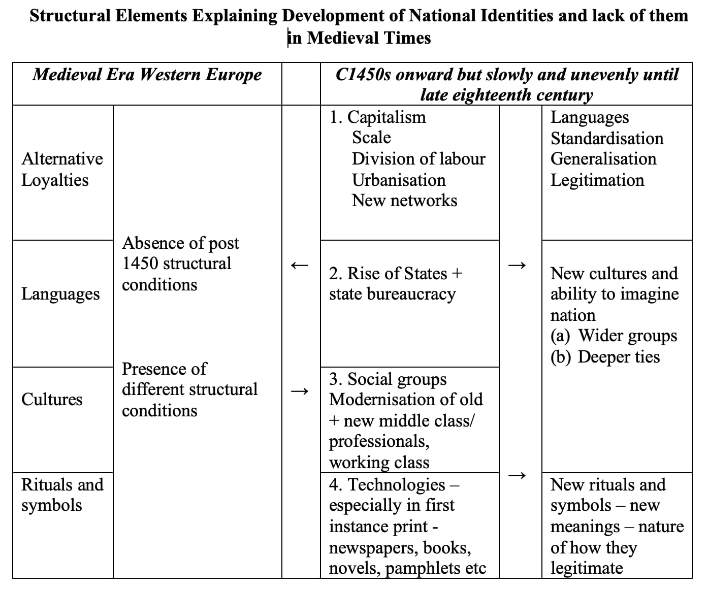 This discussion that follows began as a response to a challenge posted on Facebook which then developed into a set of private exchanges that seem worth making more widely available. The issue is how to understand the idea of national identity in the period before the rise of capitalism.